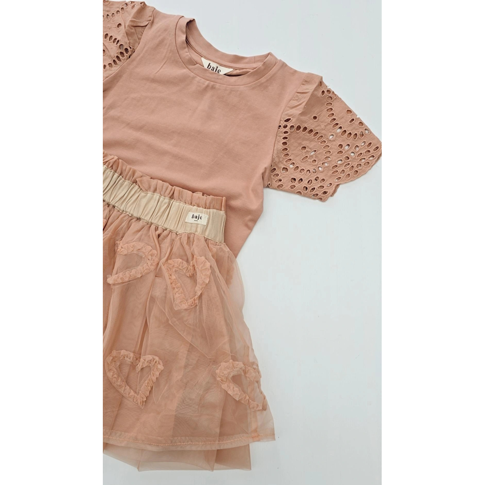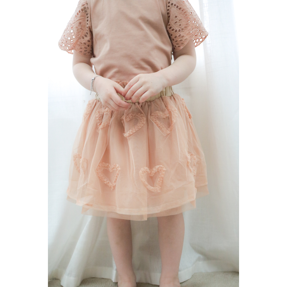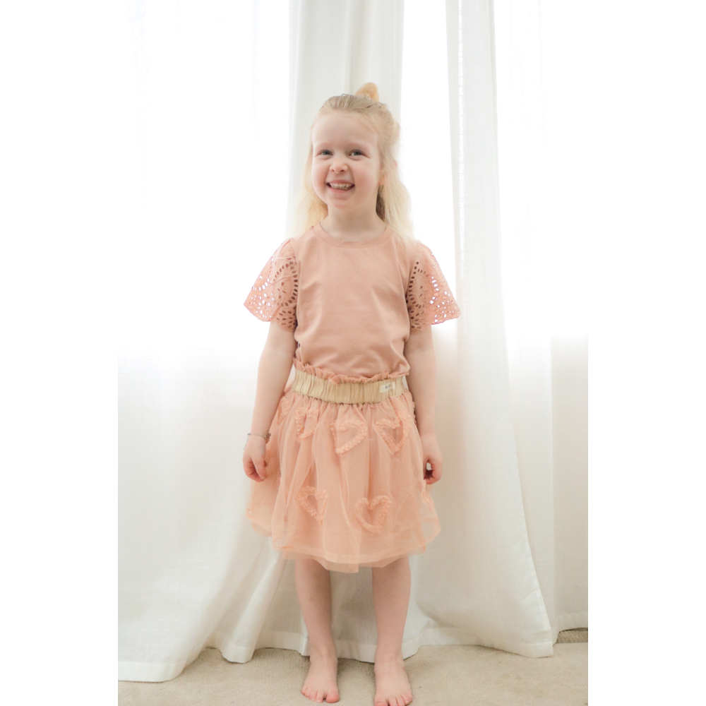 deze betoverende tule rok in zachte perziktint is afgewerkt met speelse