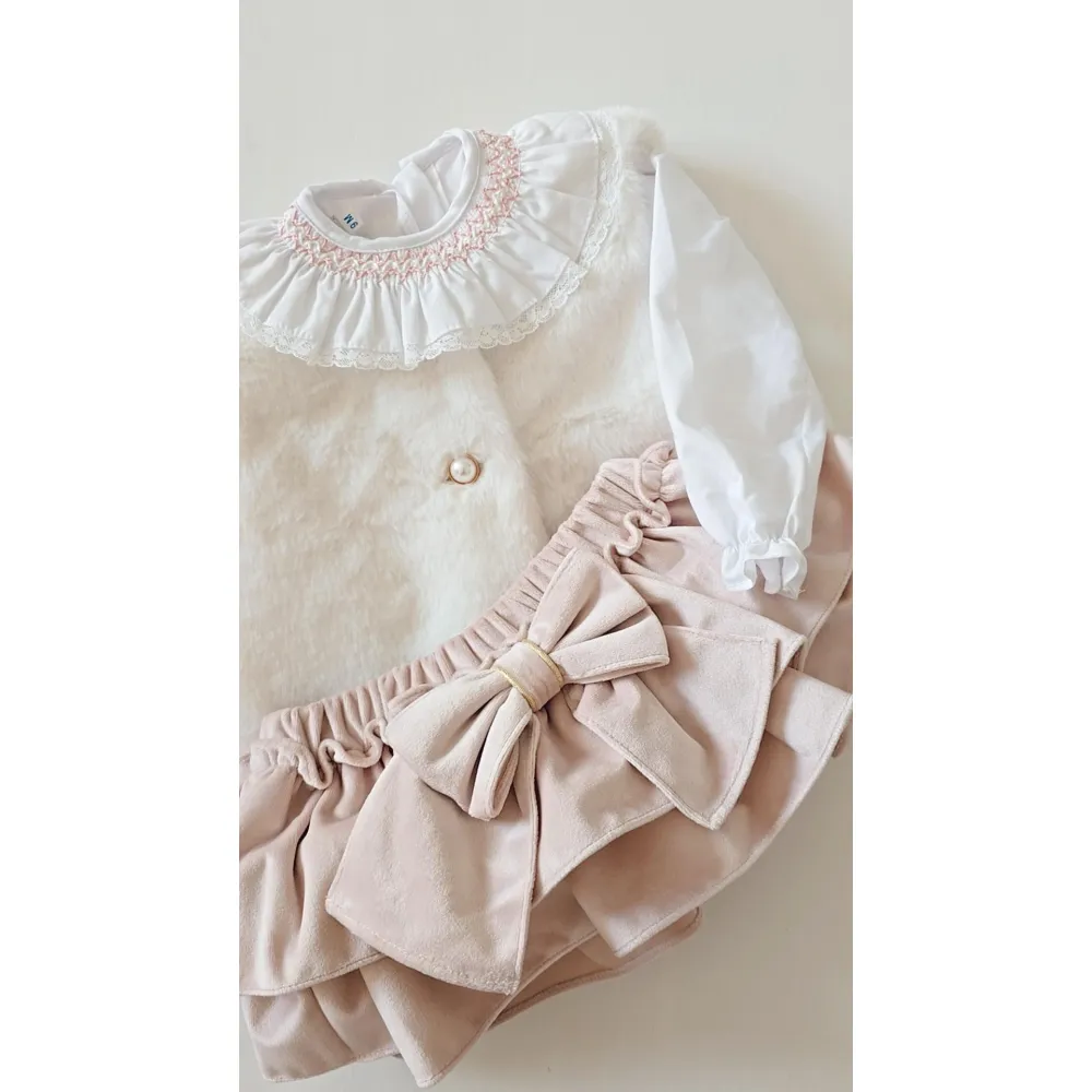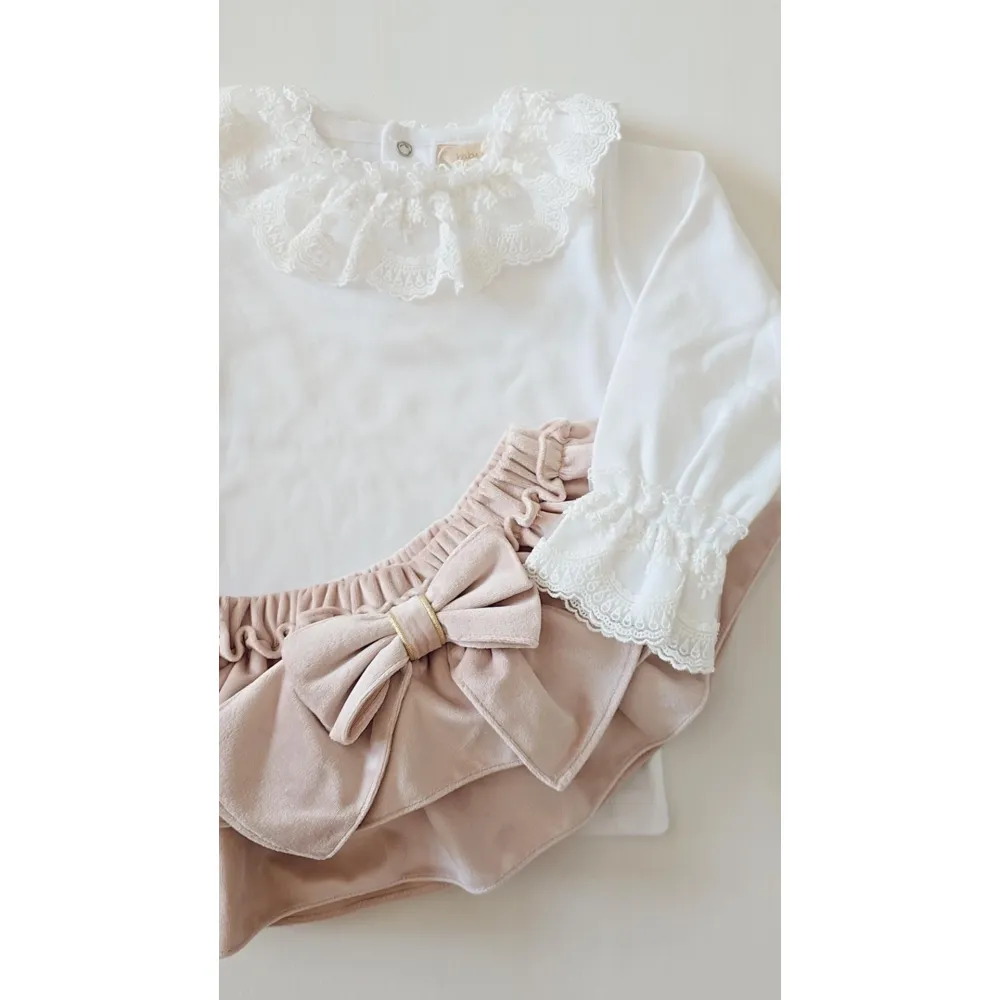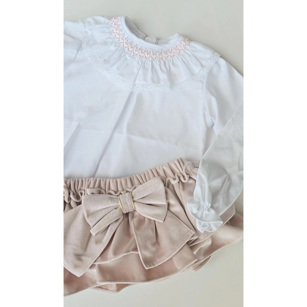 prachtige velvet bloomer in zacht roze stof de bloomer is echt mega zacht achteraan is deze afgewerkt met een stik met een gouden randje merk : be chic | valt op maat | kleur : zacht roze