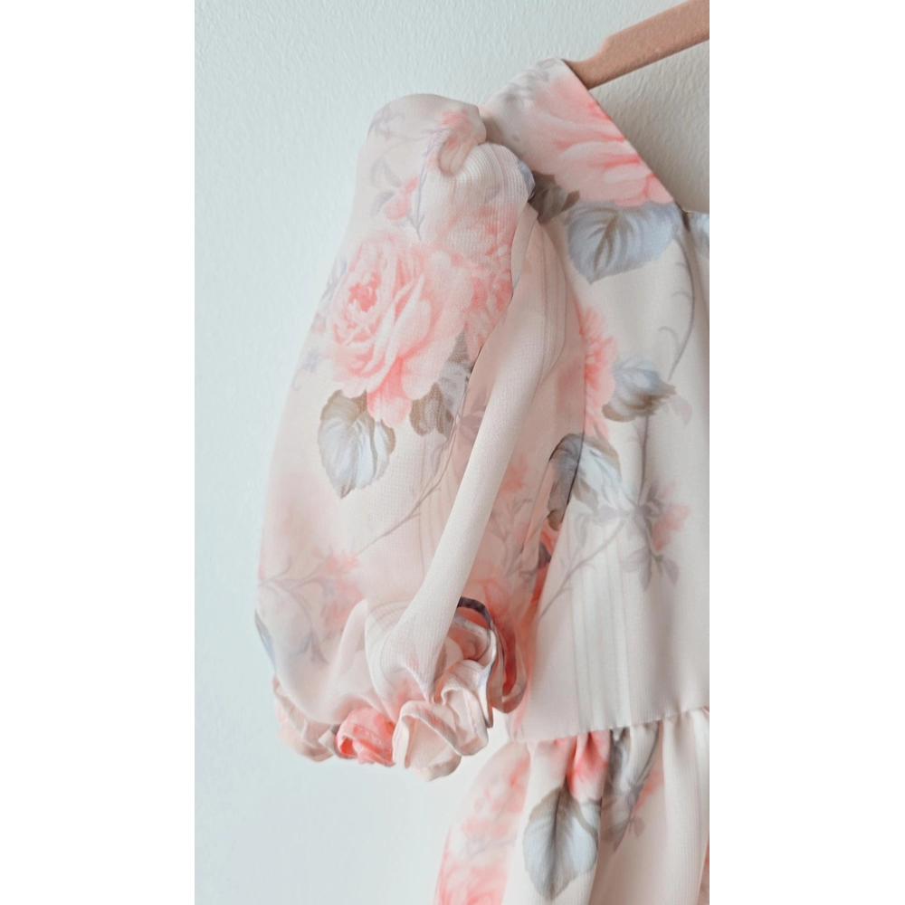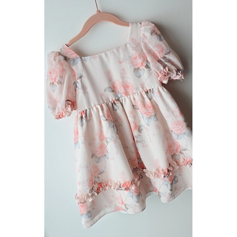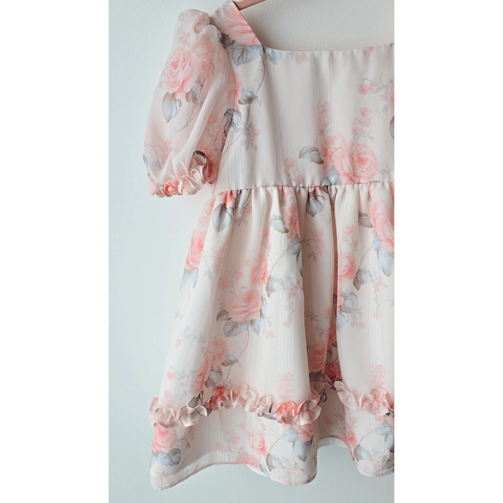 heeft lieve zachte pofmouwtjes die afgewerkt zijn met ruffeltjes