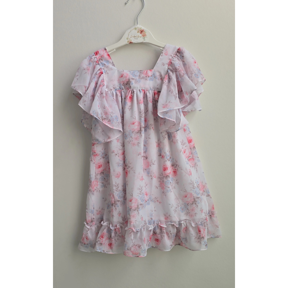 de speelse ruffle mouwtjes en de subtiele ruches aan de onderkant geven het jurkje een extra luxe en verfijnde touch.