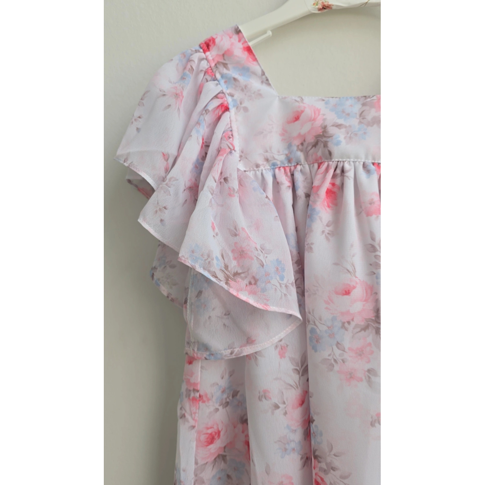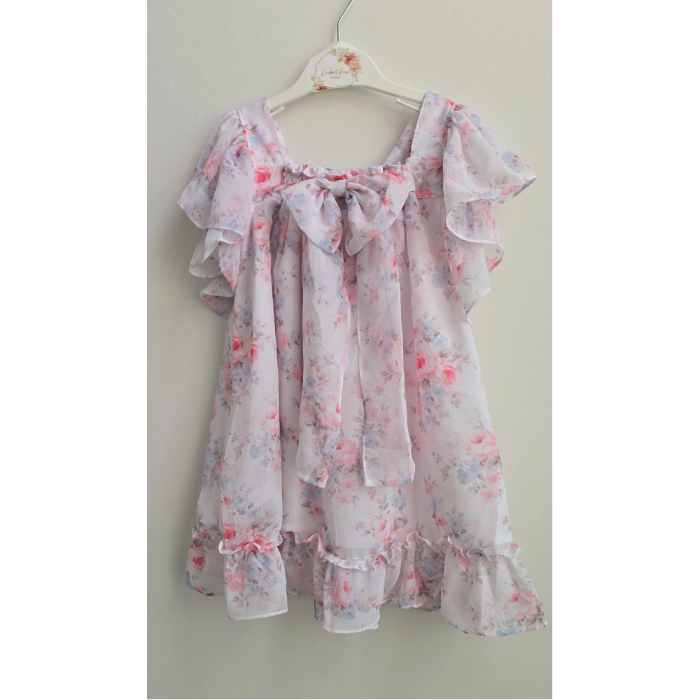 de zachte bloemenprint in pastelkleuren geeft een romantische uitstraling