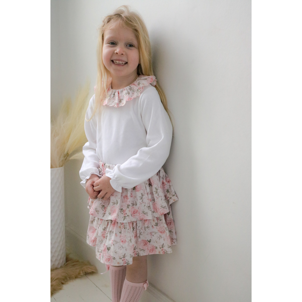de ROK is afgewerkt met een elastische tailleband de mooie ruffels zorgen voor een speels effect.