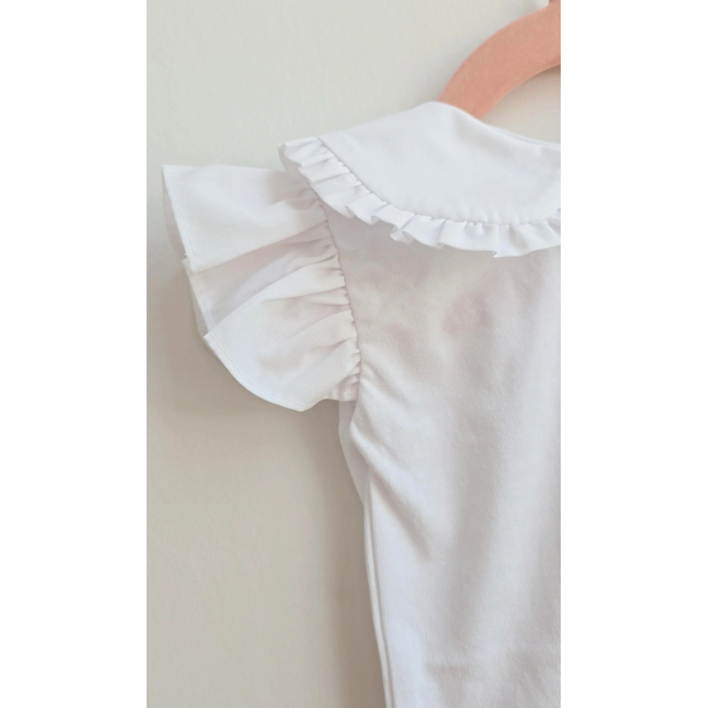 het mooi kraagje met kleine subtiele ruffeltjes lopen mooi door op de rug