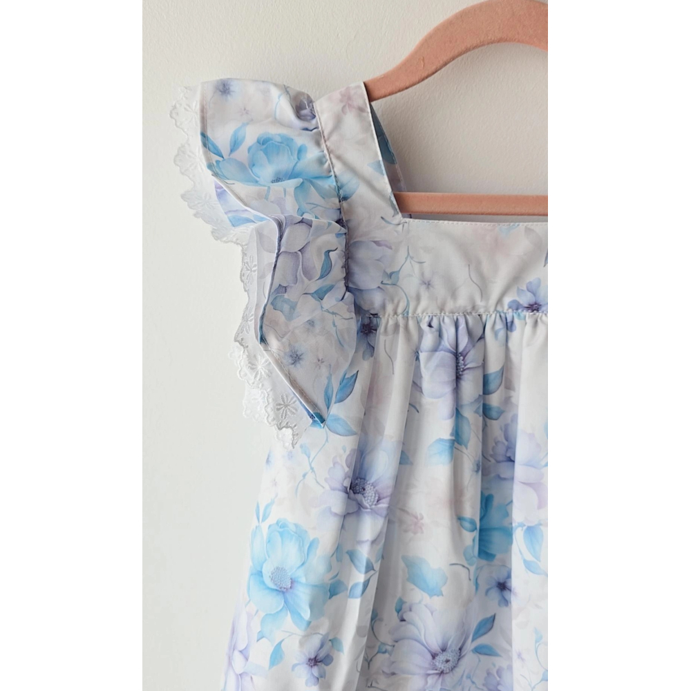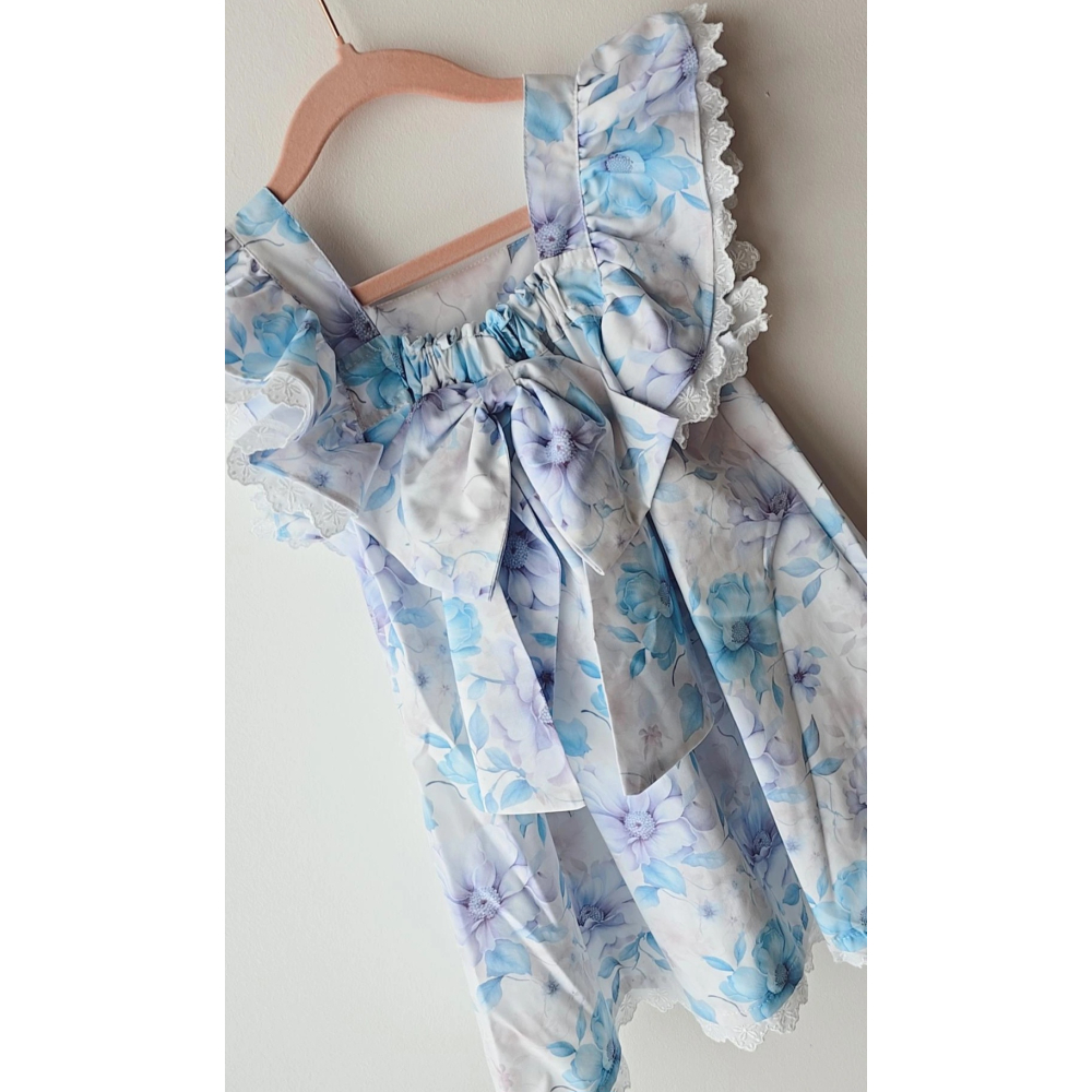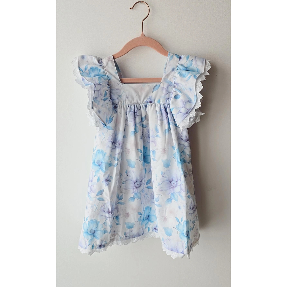 jurkje fien heeft een blauwe paarse print