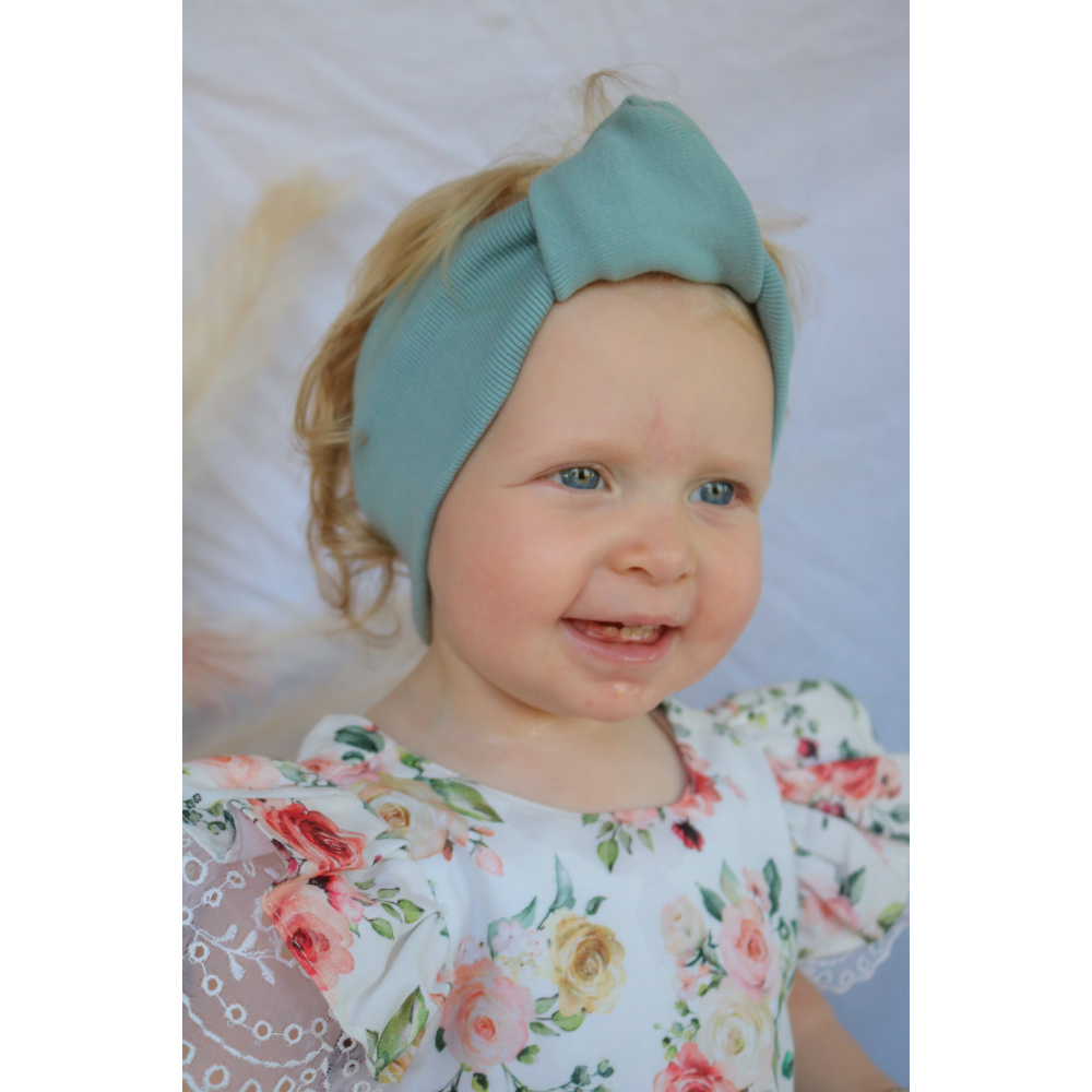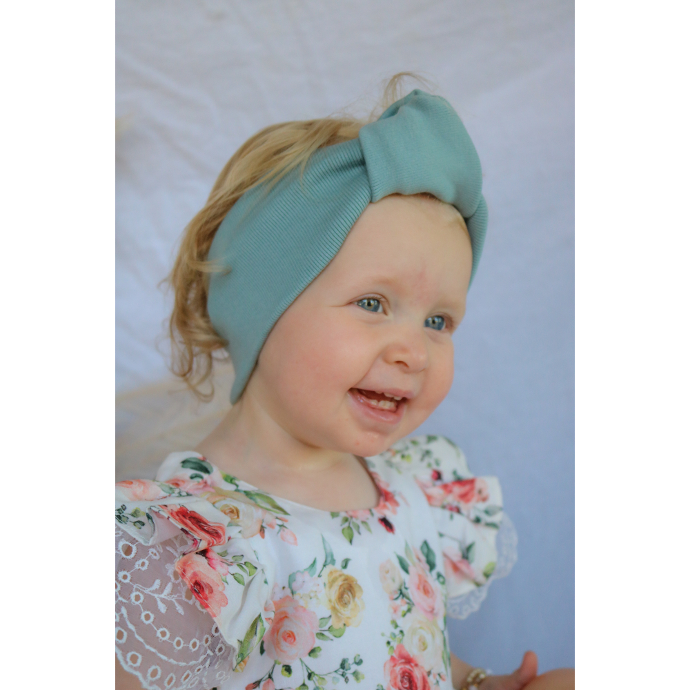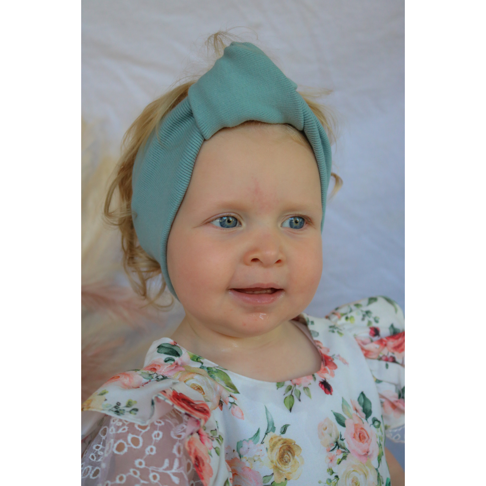 prachtige haarband uit rib stof in de kleur eucalyptus
