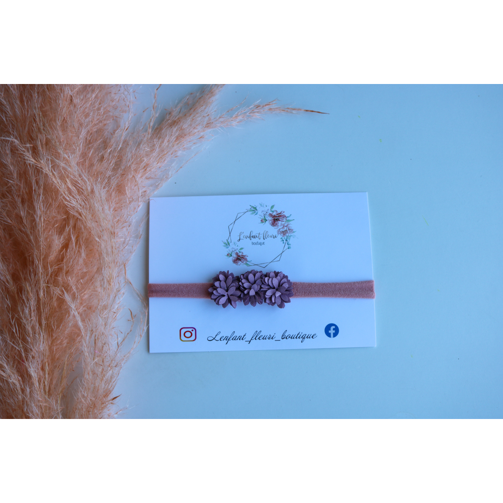 Paarse bloemen. Dit haarbandje is gemaakt van zachte nylon woordaar deze al te gebruiken zijn vanaf de geboorte. Ze passen goed rond het hoofdje van het kindje. Deze schattige bloemetjes maken het helemaal af.