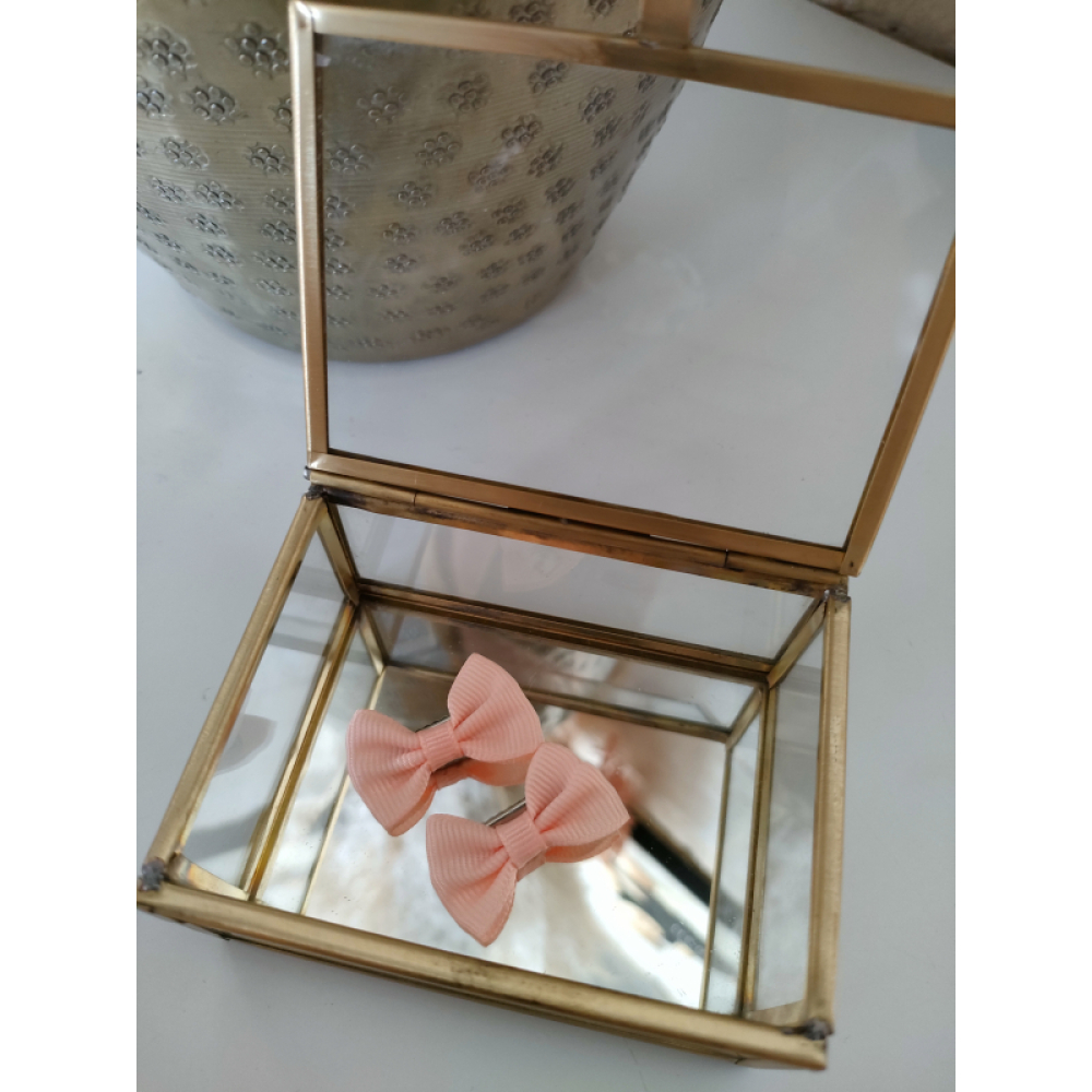 set van 2 kleine stoffen strikjes op aan alligaror speldje van 3 cm