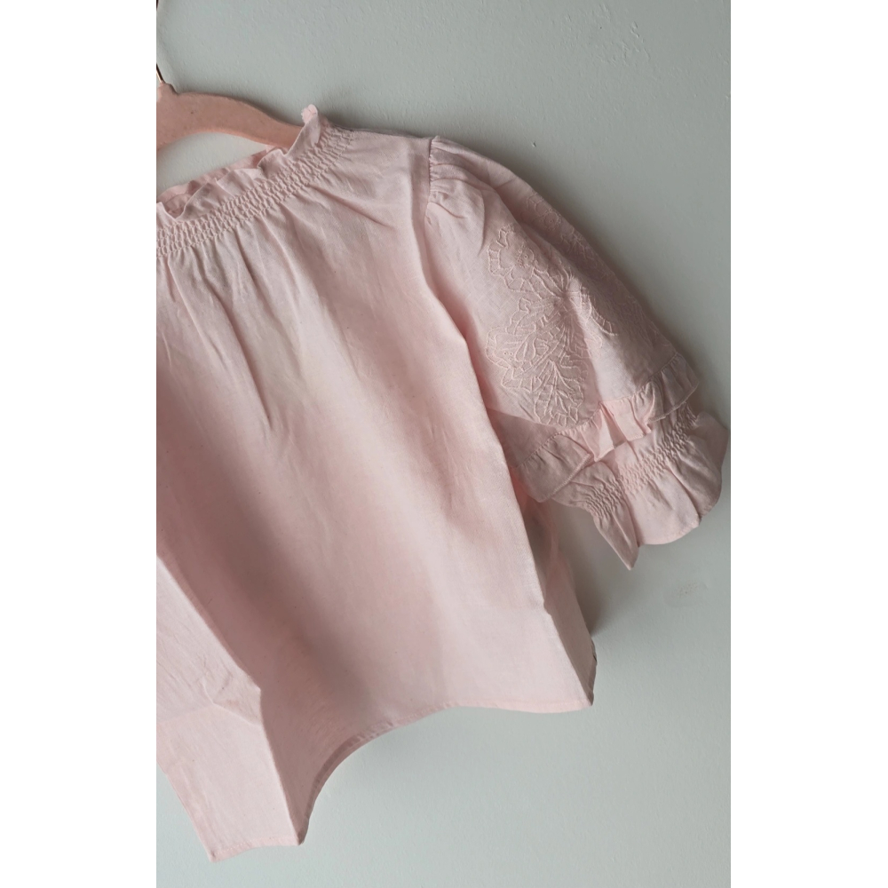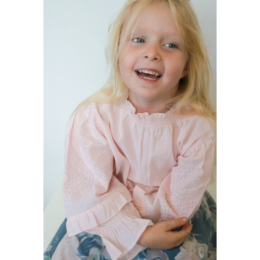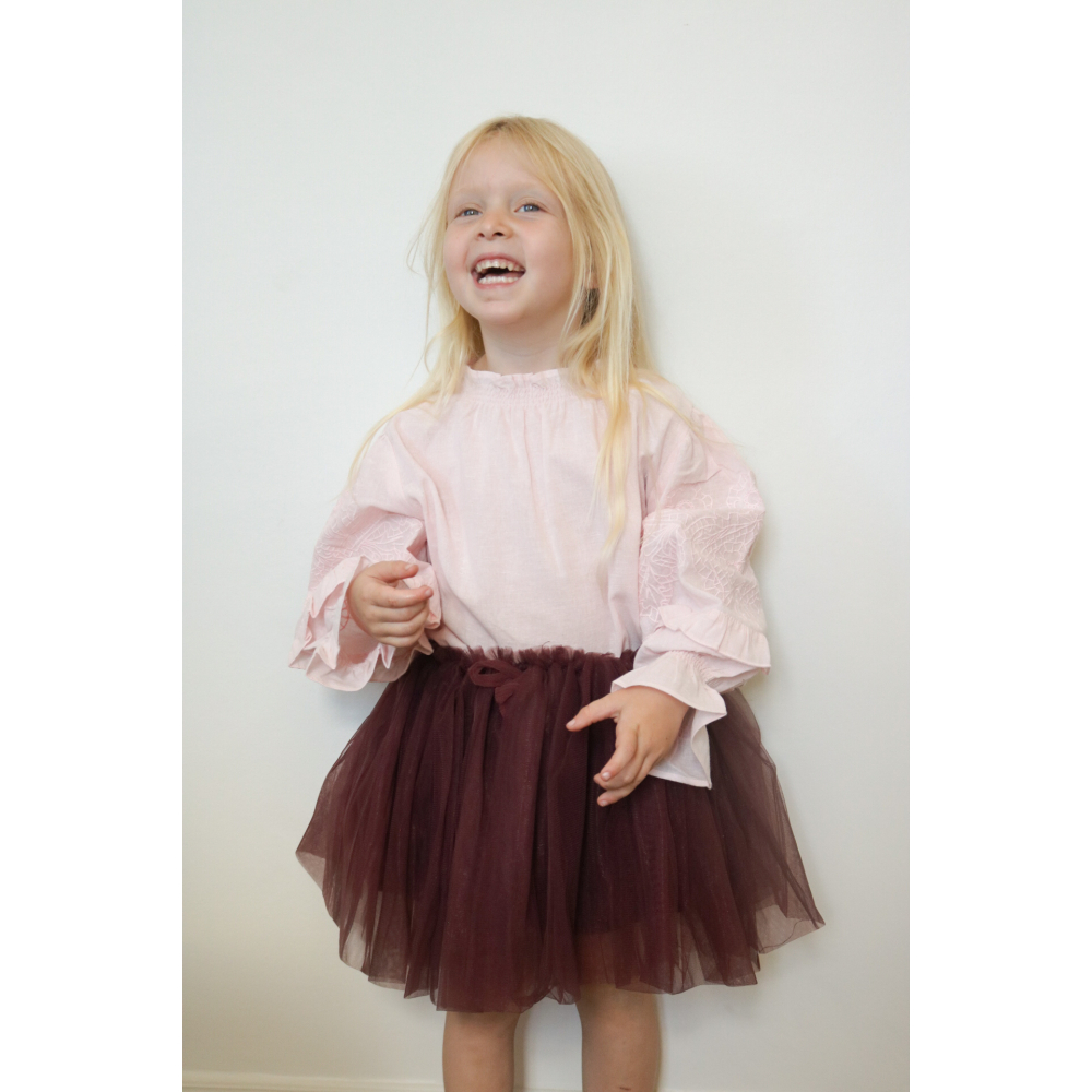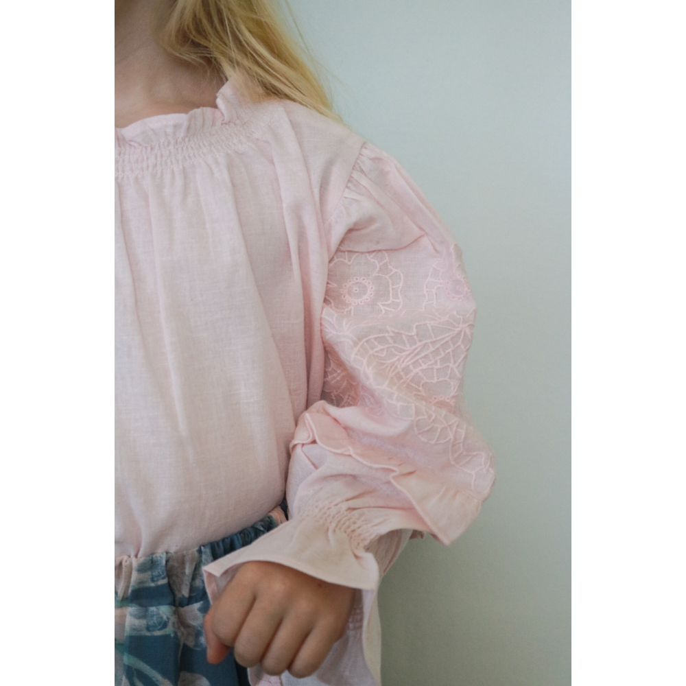 met een klein opstaand kraakje en een ruffeltje aan de mouwen onderaan