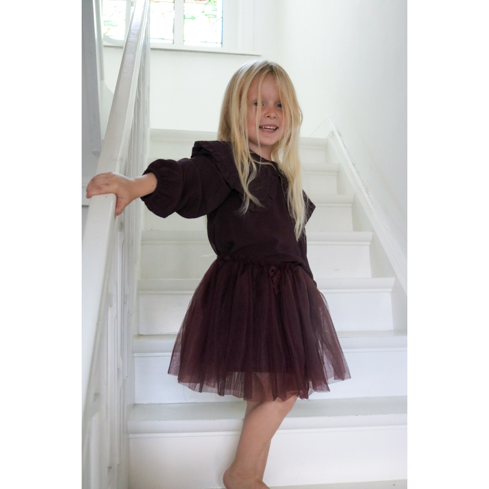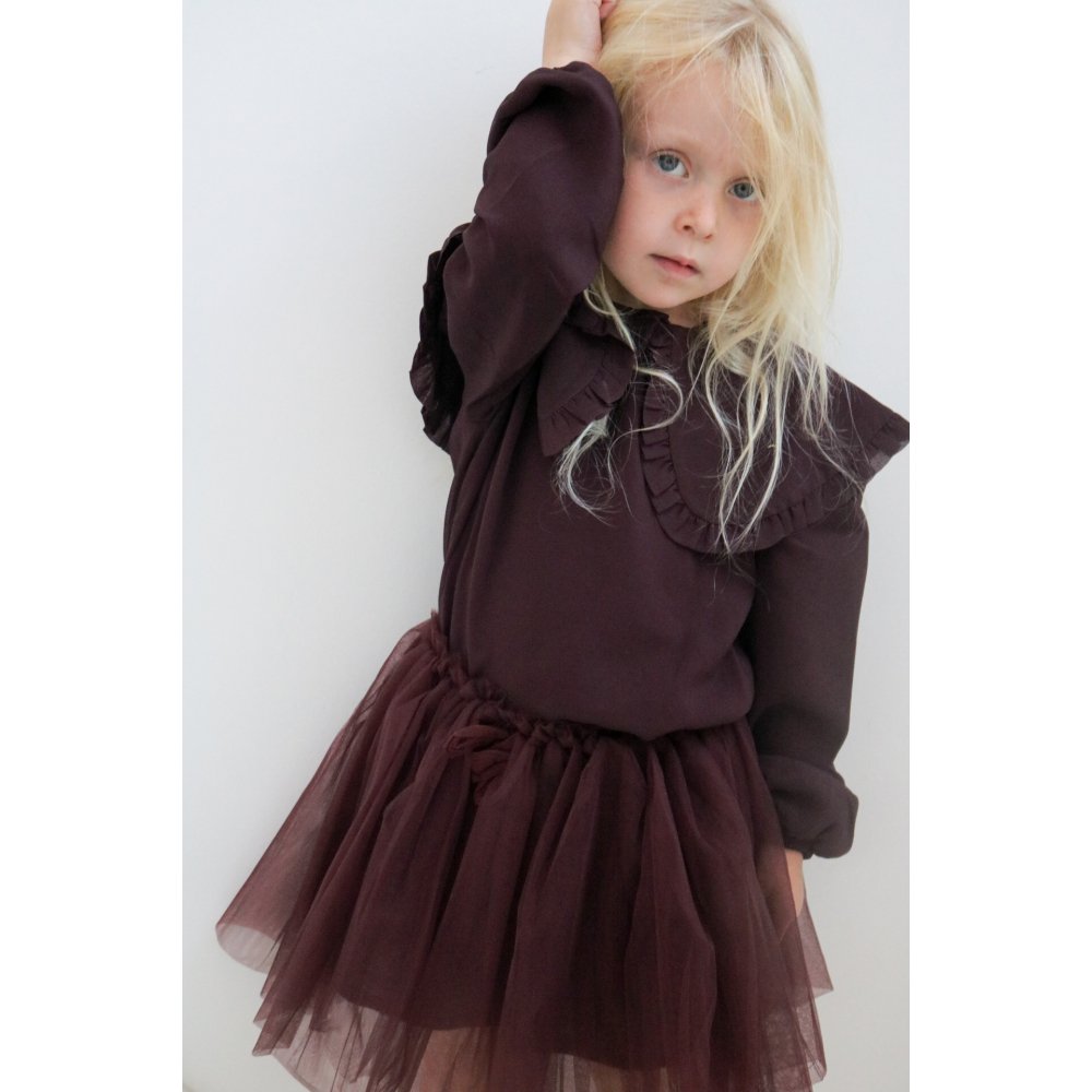 met een mooie kraag afgewerkt met een klein ruffeltje.