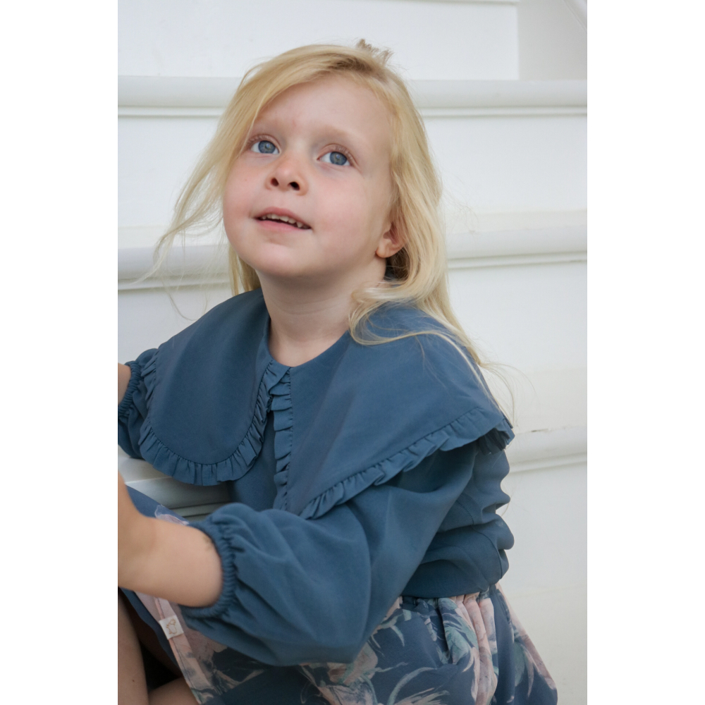 met een mooie kraag afgewerkt met een klein ruffeltje.