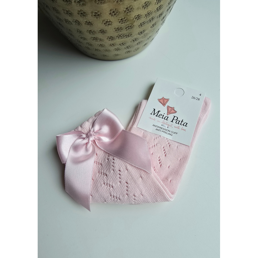 MEIA PATA | kniekousjes met satijnen strik baby pink