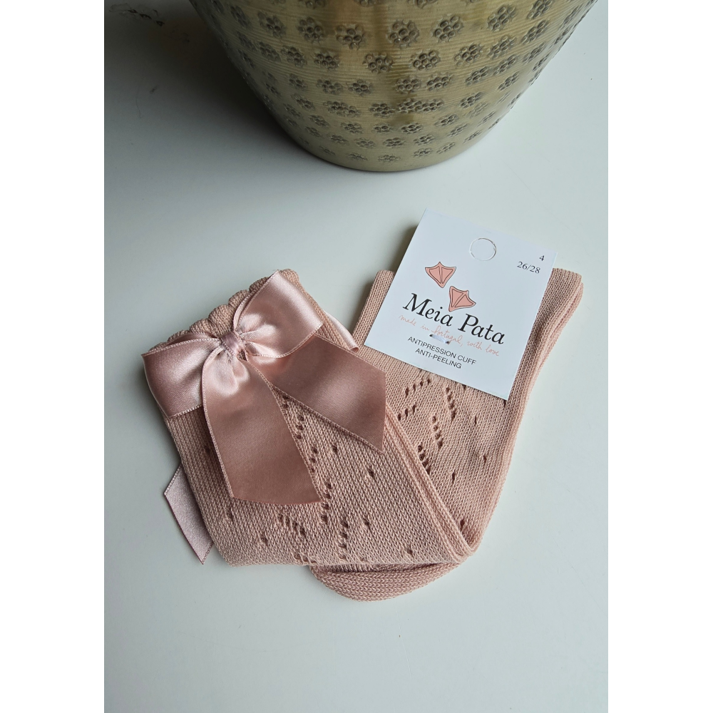 MEIA PATA | kniekousjes met satijnen strik pink nude
