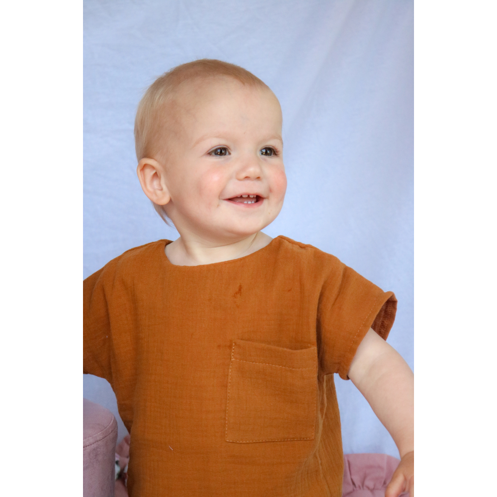 karamel kleurige muslin shirt gemaakt van tetra stof heerlijk fris voor de warme zomerdagen.