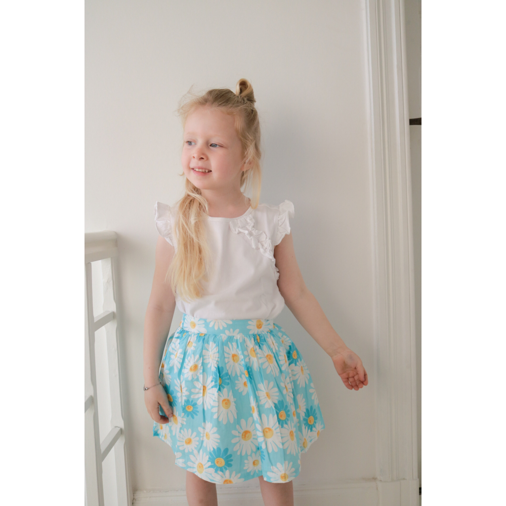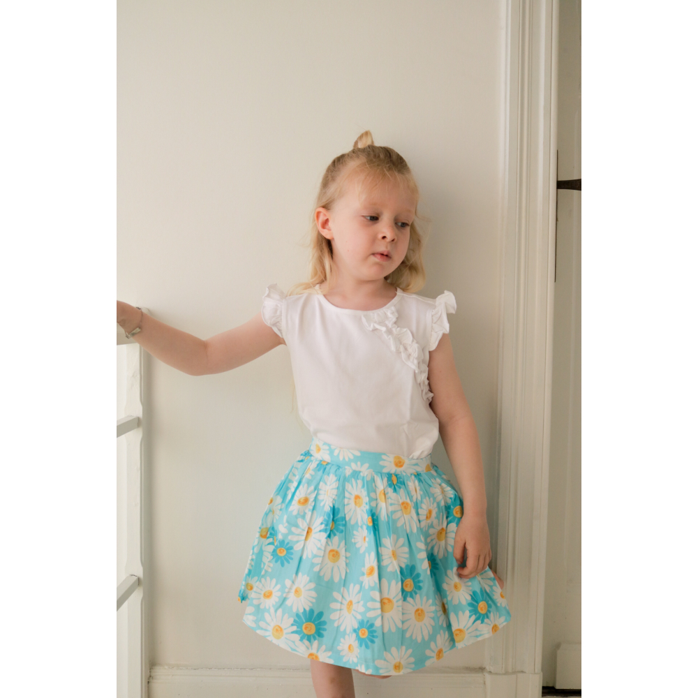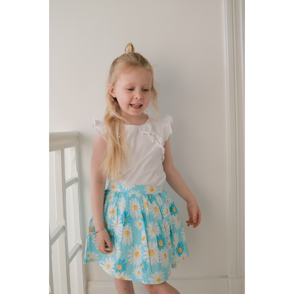 Deze vrolijke meisjes rok in frisse turquoise tint is een echte eyecather.