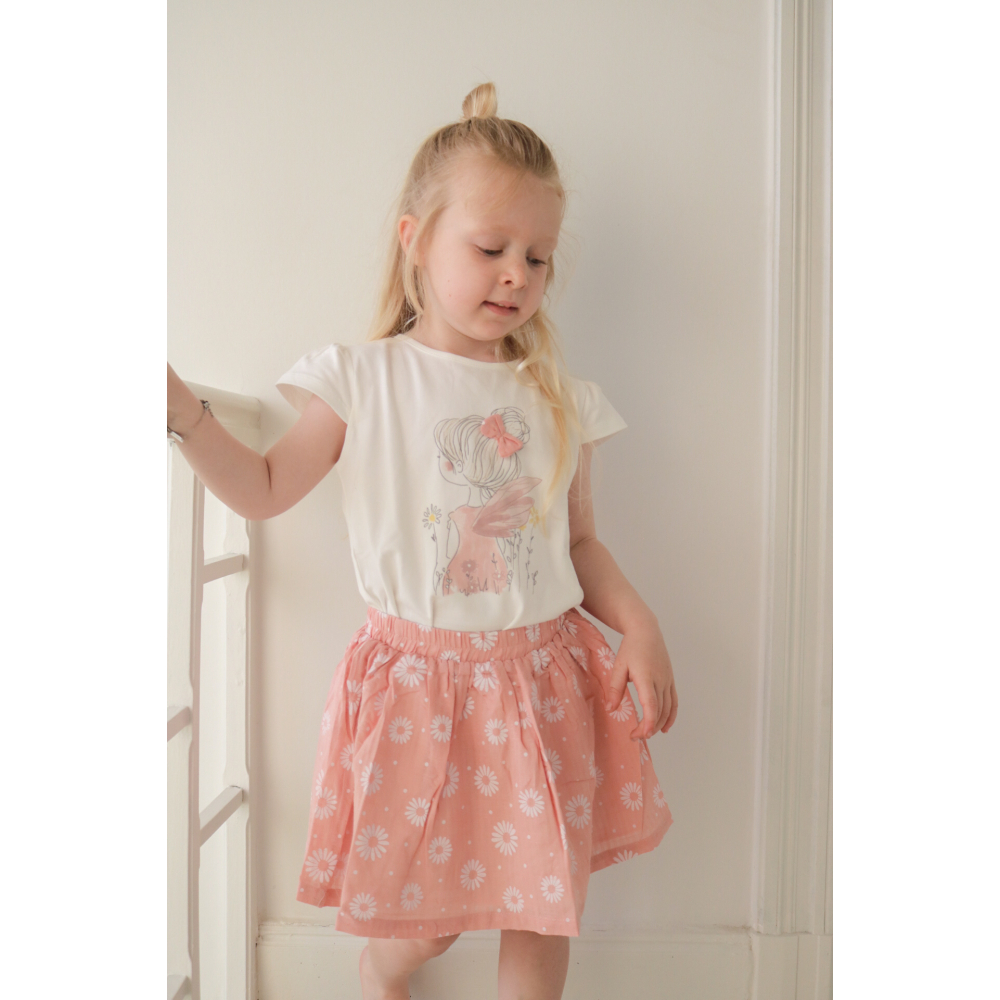 er staat een lieve illustratie van een meisje op met vleugels in zachte roze tinten.afgewerkt met een klein 3D strikje.