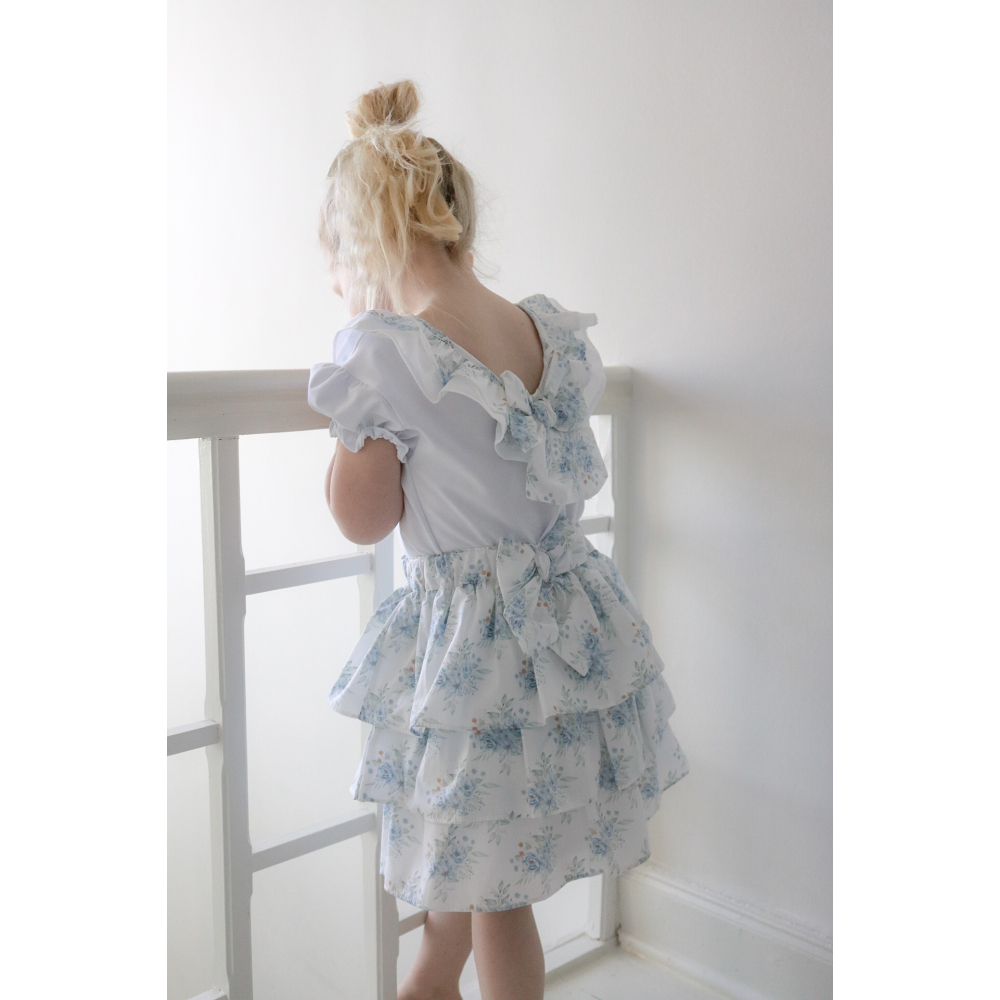 de rok heeft meerdere laagjes en zachte ruches die zorgen voor een zwierig en elegant effect.