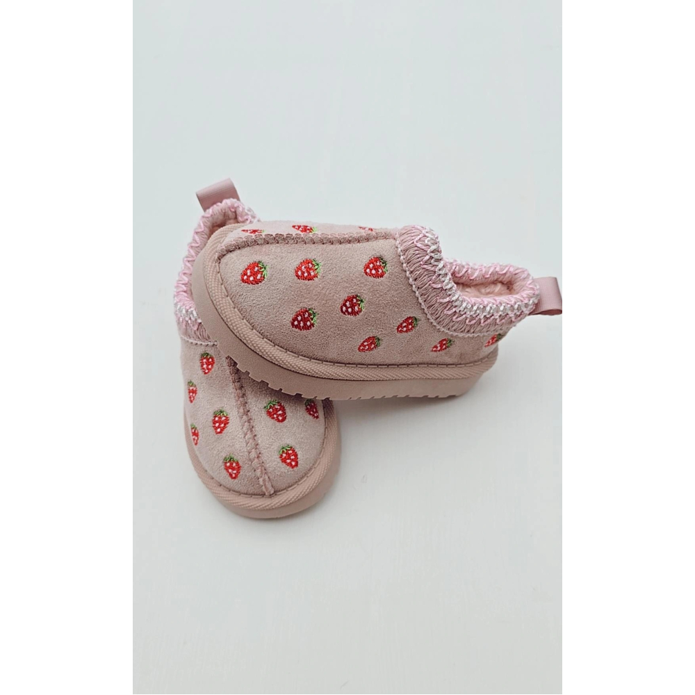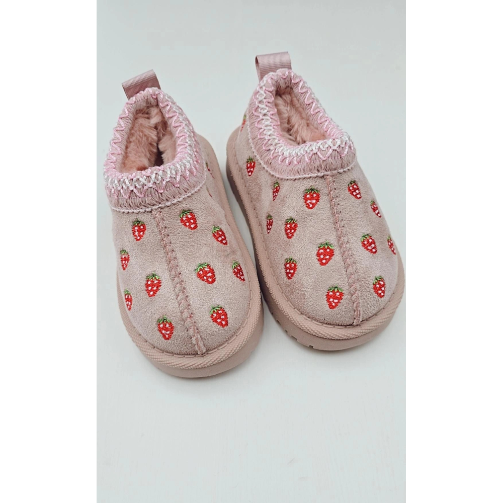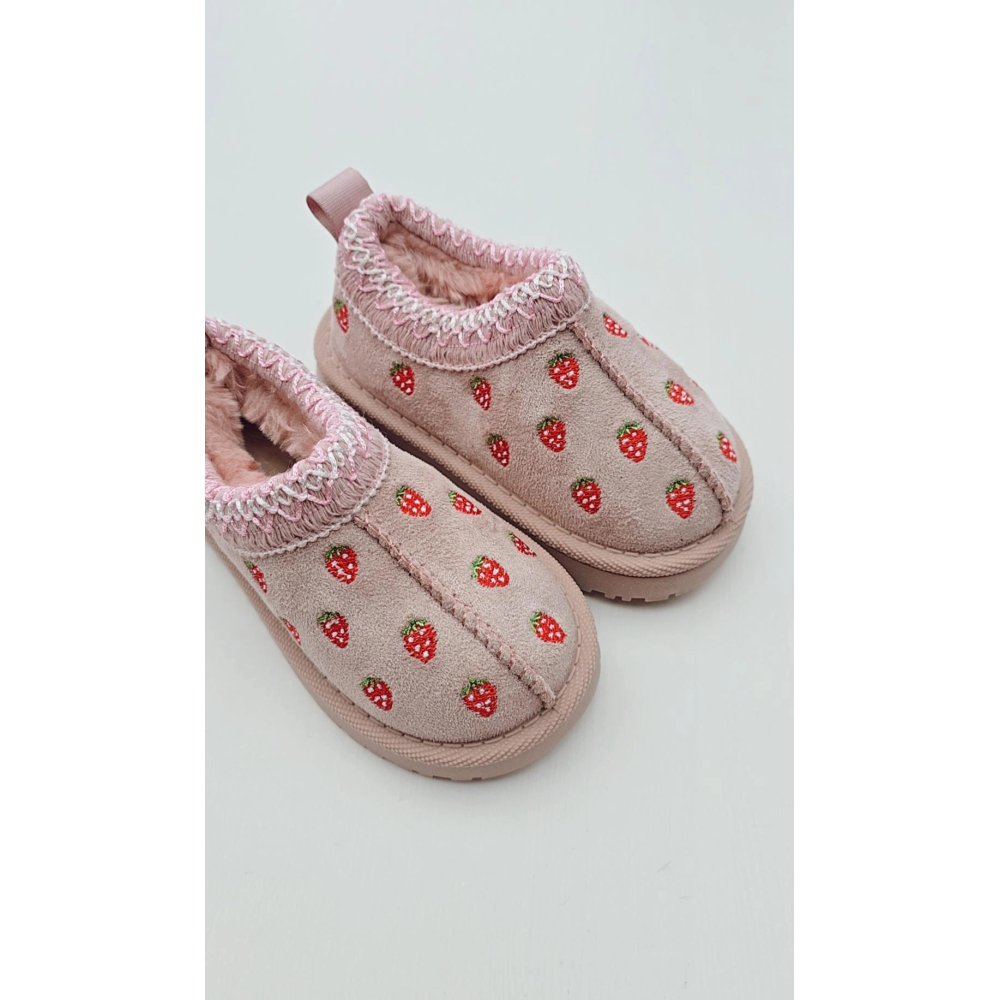 heerlijke fluffy furry sloflaarsjeswant je kan deze als beide gebruiken 1 ding is zeker je zal vast heerlijke warme voetjes hebben. ze hebben een begreide afwerking en geborduurde aardbeitjes